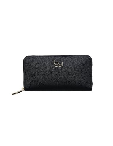 PORTAFOGLIO NERO BYBLOS CON CERNIERA, ALL'INTERNO COMPLETO DI TUTTI GLI SCOMPARTI PER TUTTI I DOCUMENTI E PER 16 CARTE , CON SCOMPARTO PER LE MONETE.